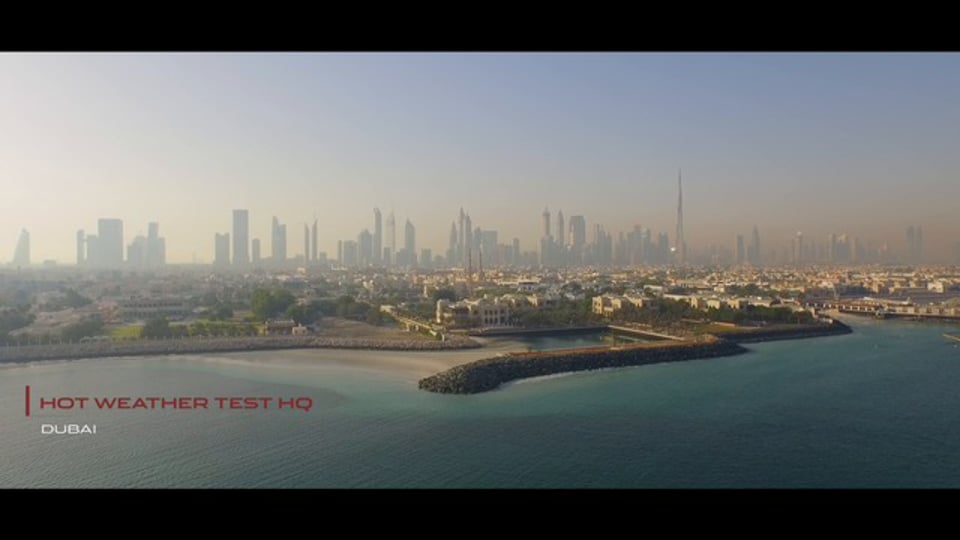 À Dubaï, la température peut dépasser les 50°C à l'ombre. Quand les véhicules restent dehors au soleil, la température dans l'habitacle atteint parfois 70°C. Lieu donc idéal pour s'assurer que tout, de la climatisation à l'écran tactile du système d'infodivertissement, fonctionne parfaitement dans des conditions extrêmes de chaleur et d'humidité.