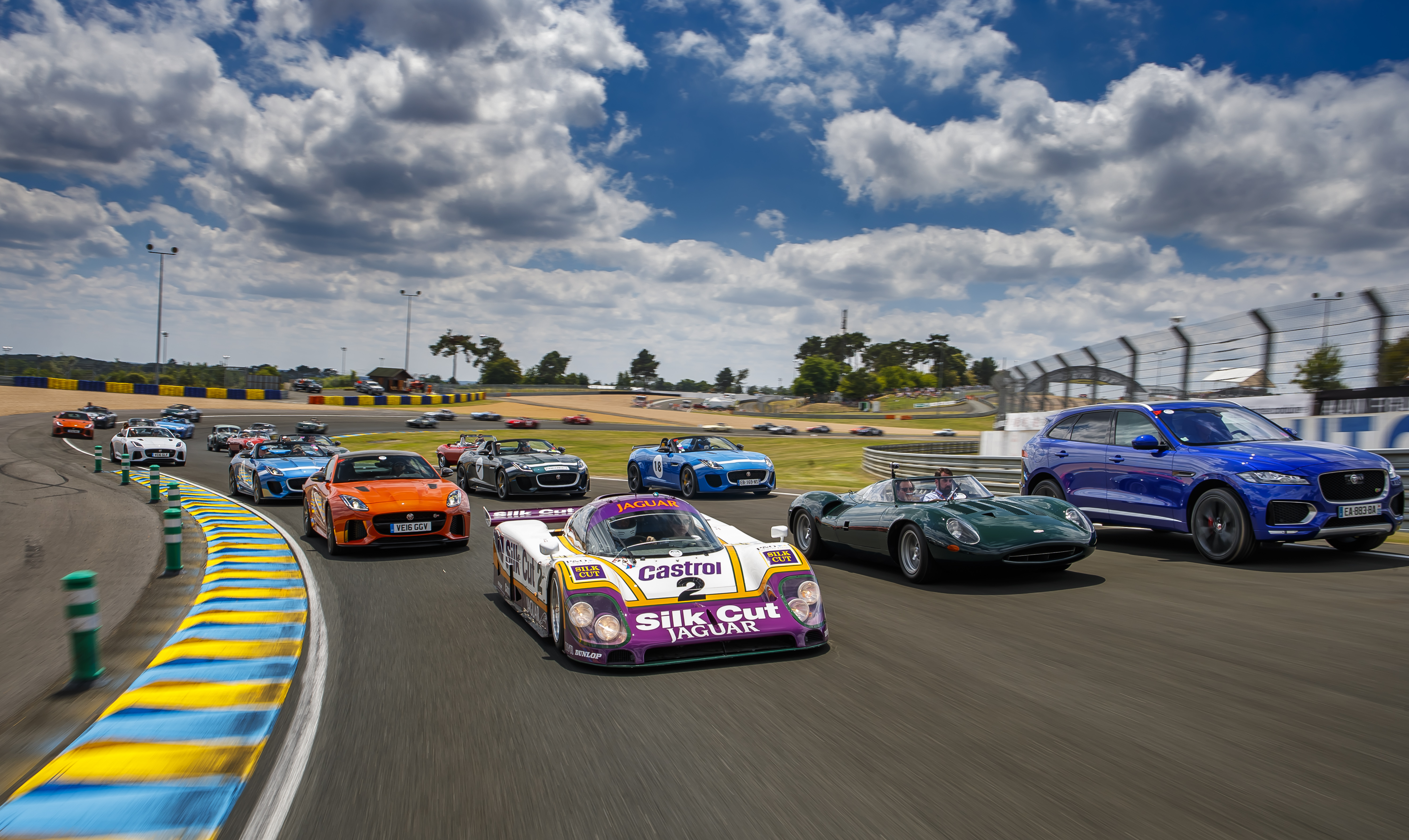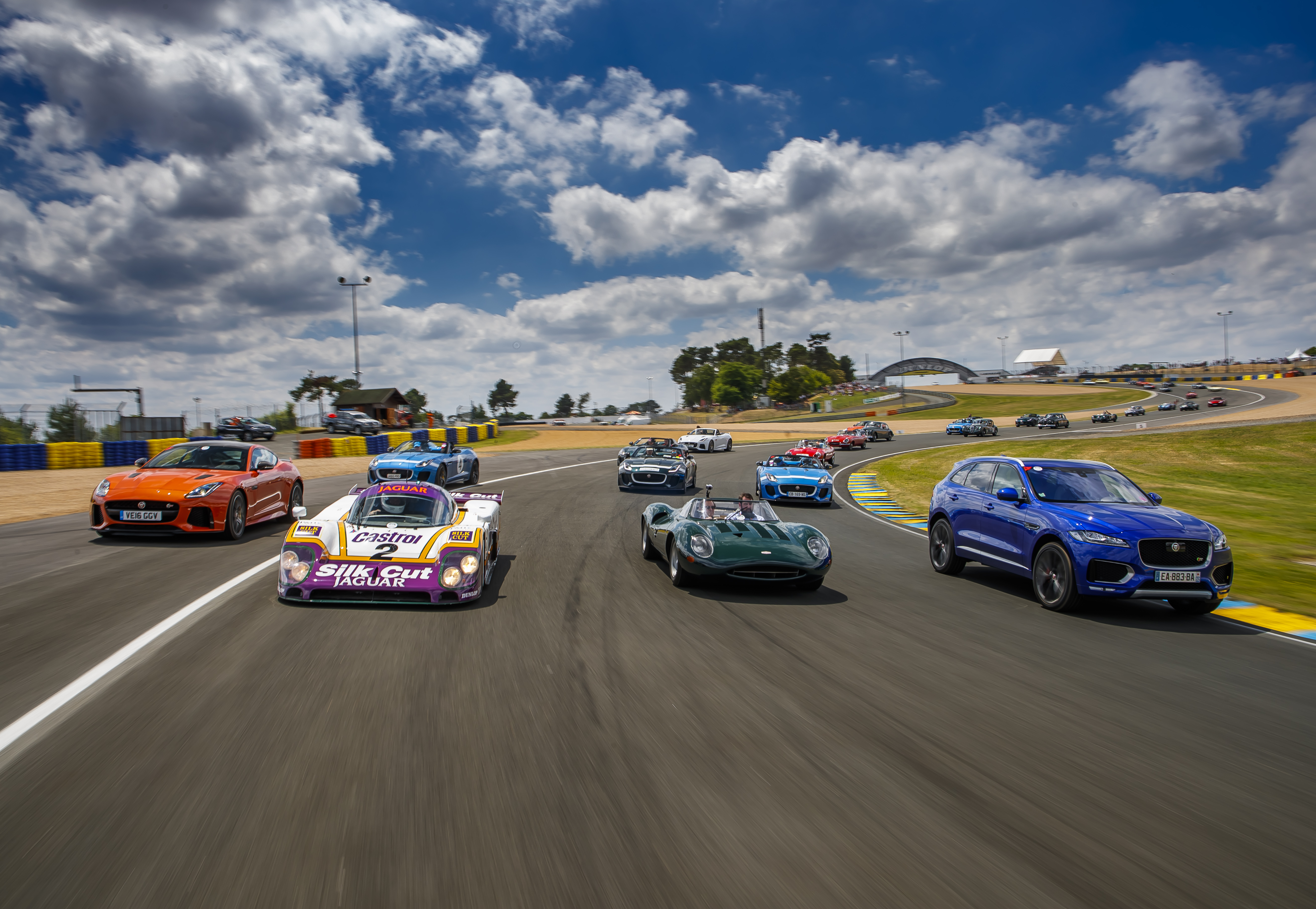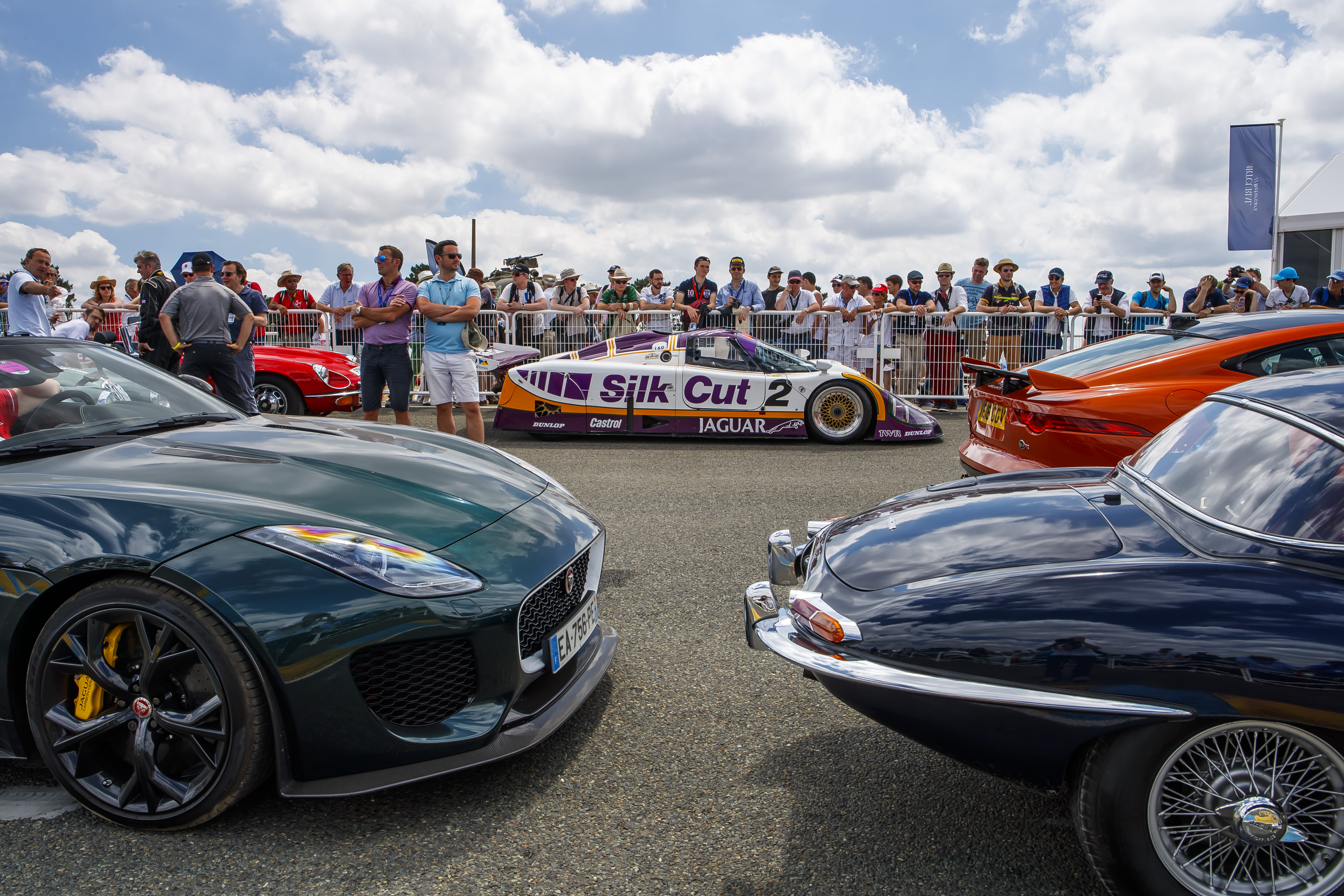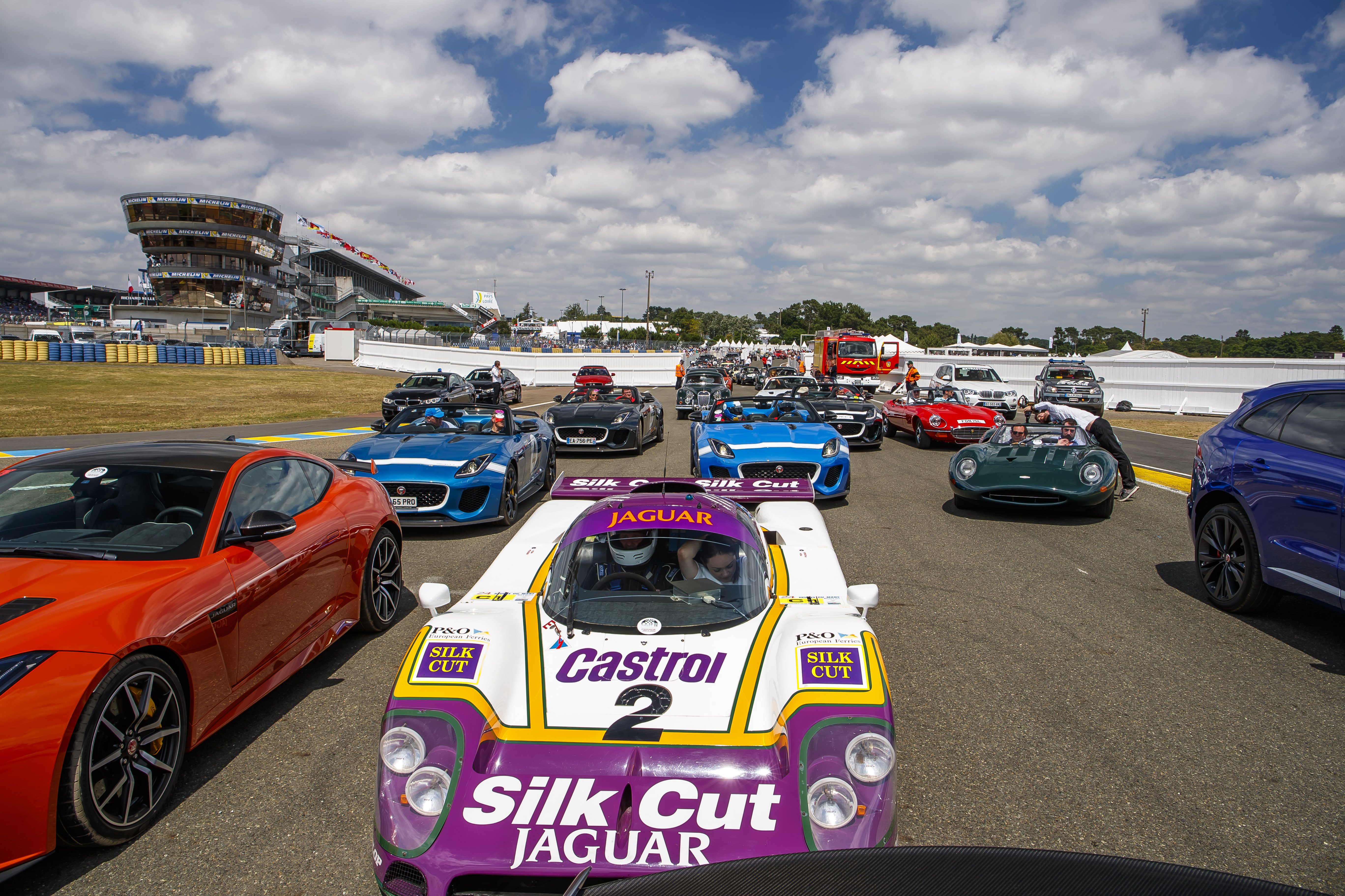 La Jaguar XJR‑9, vainqueur en 1988 pilotée notamment par Andy Wallace, était également à l’honneur, participant à l’exceptionnelle parade de 100 Jaguar, ainsi que la XJ13, prototype unique de 1966, entourées de tous les modèles retraçant l’histoire de la marque jusqu’à la toute dernière F‑TYPE SVR de 575ch, la Jaguar de production la plus rapide jamais construite, capable d’atteindre 322 km/h.