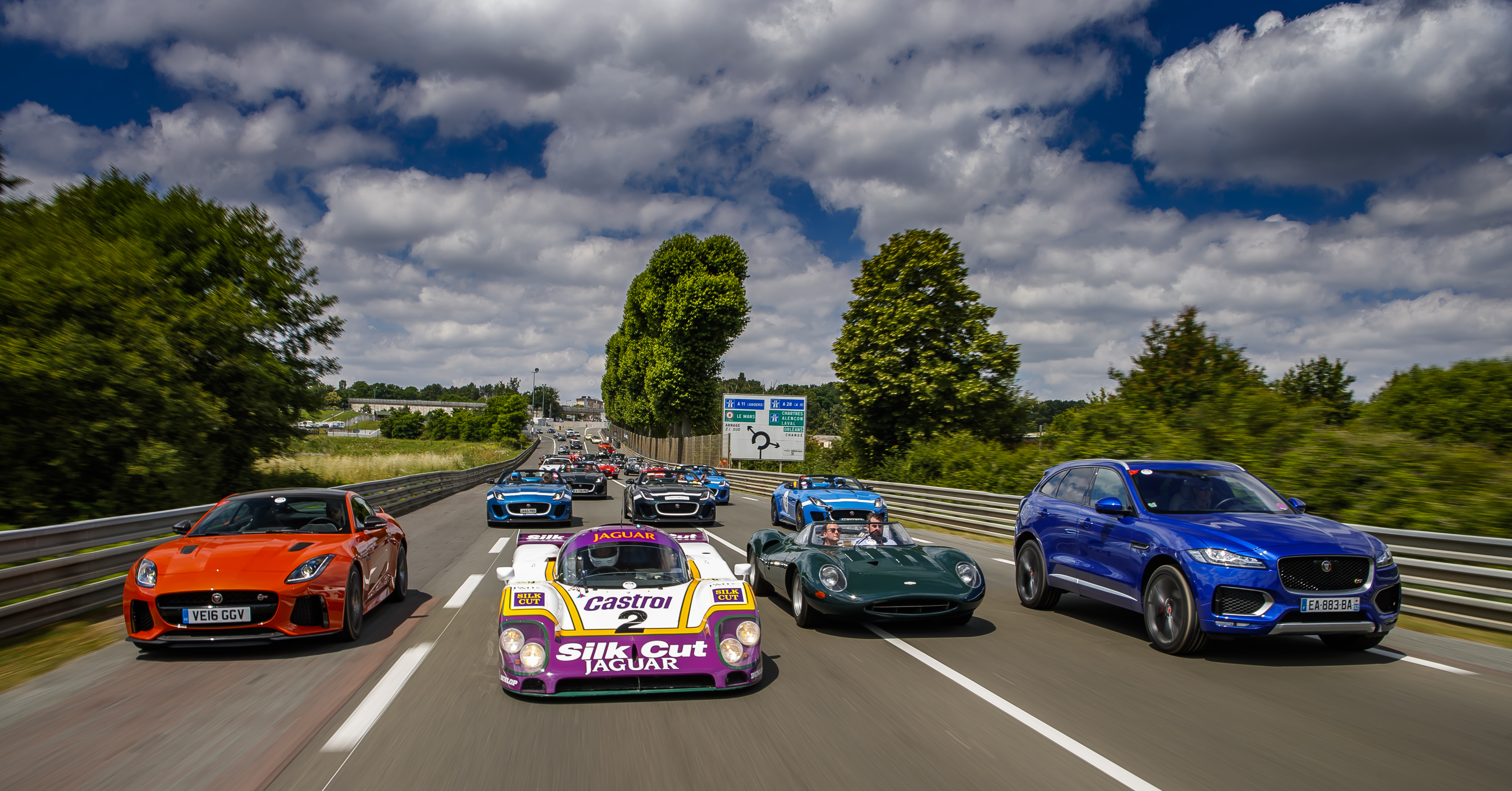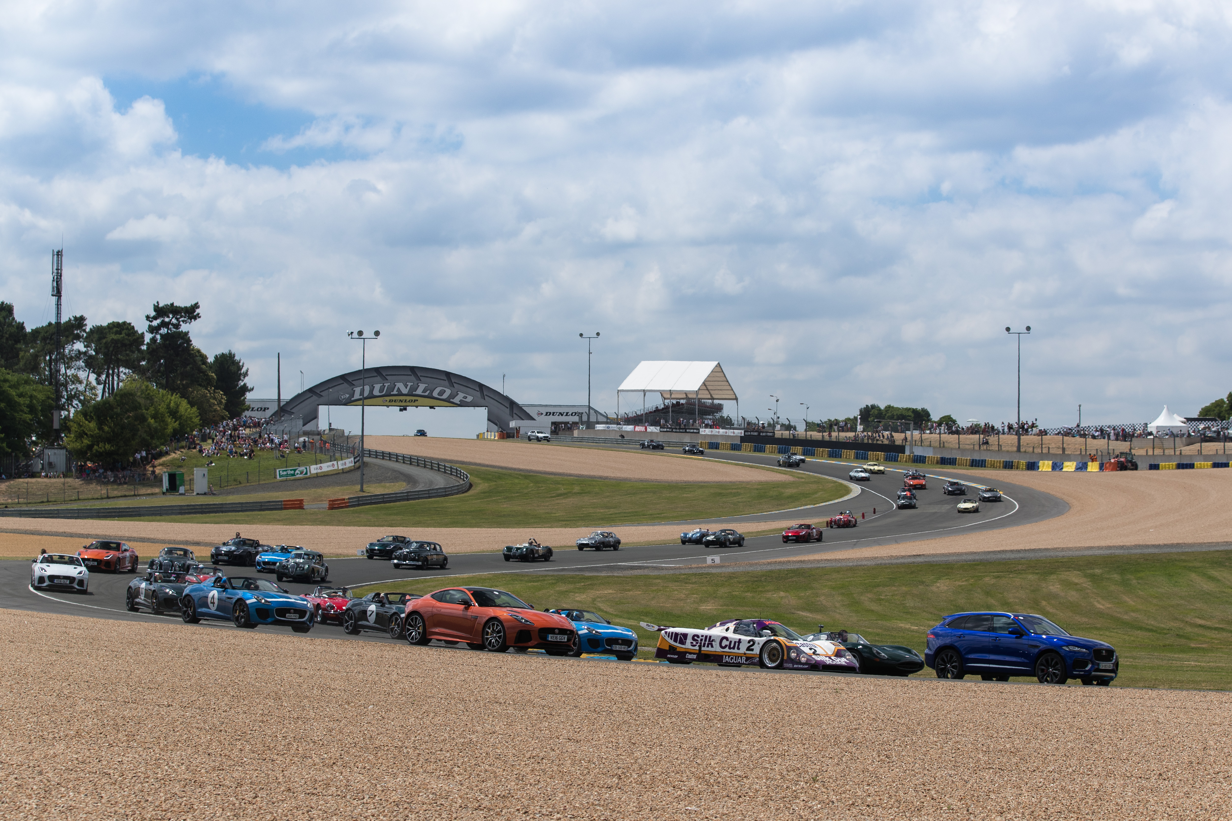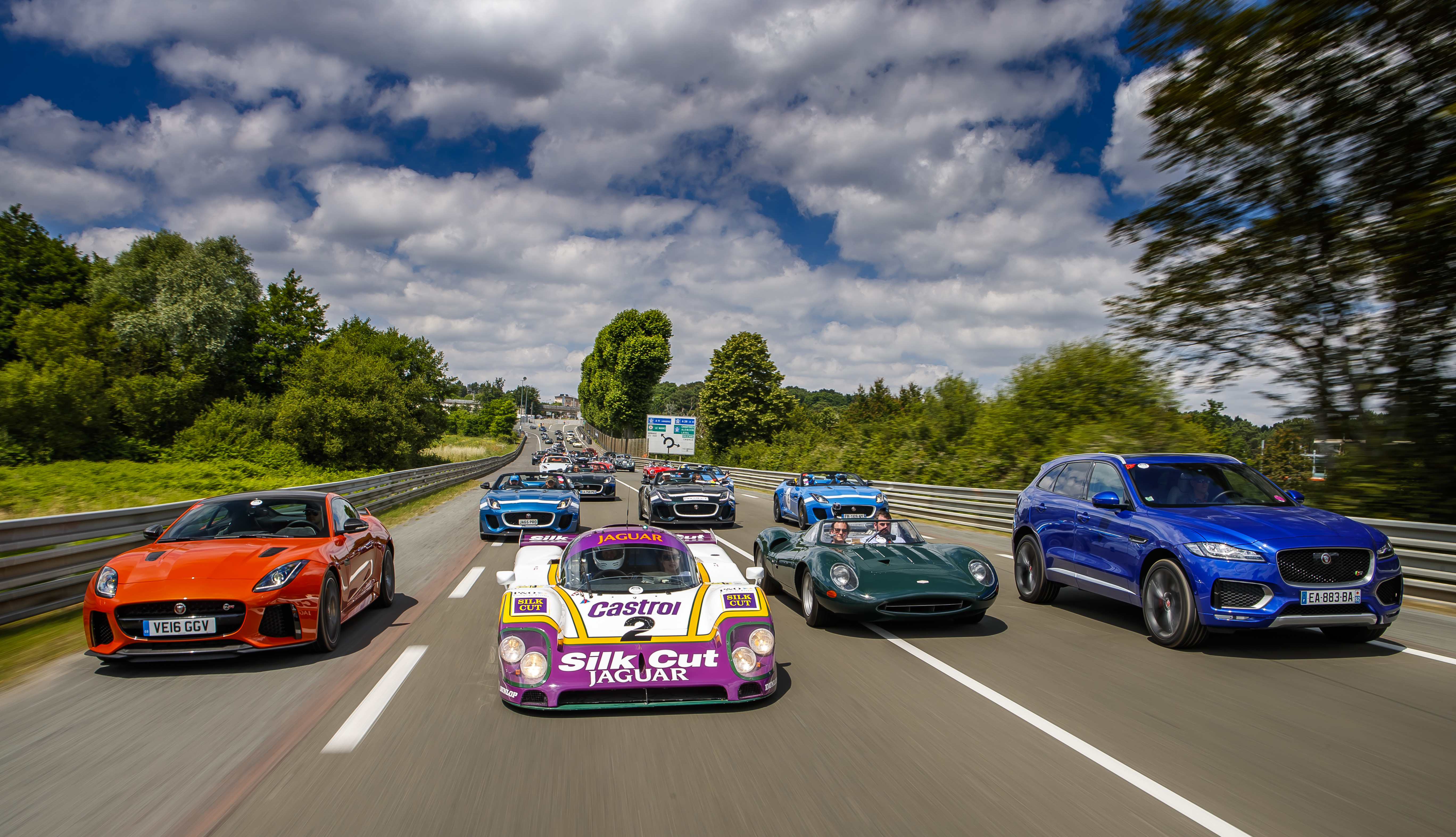 La Jaguar XJR‑9, vainqueur en 1988 pilotée notamment par Andy Wallace, était également à l’honneur, participant à l’exceptionnelle parade de 100 Jaguar, ainsi que la XJ13, prototype unique de 1966, entourées de tous les modèles retraçant l’histoire de la marque jusqu’à la toute dernière F‑TYPE SVR de 575ch, la Jaguar de production la plus rapide jamais construite, capable d’atteindre 322 km/h.