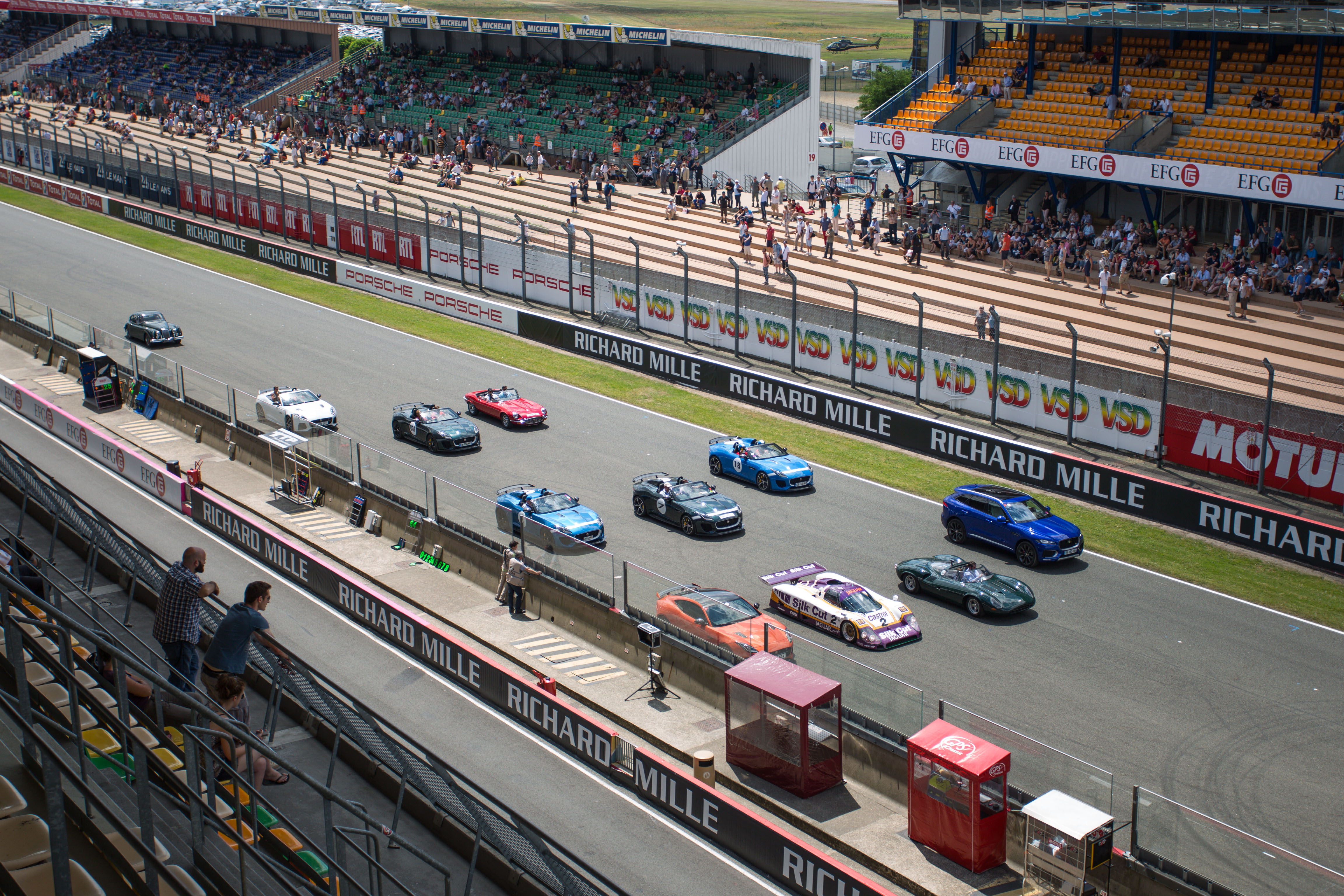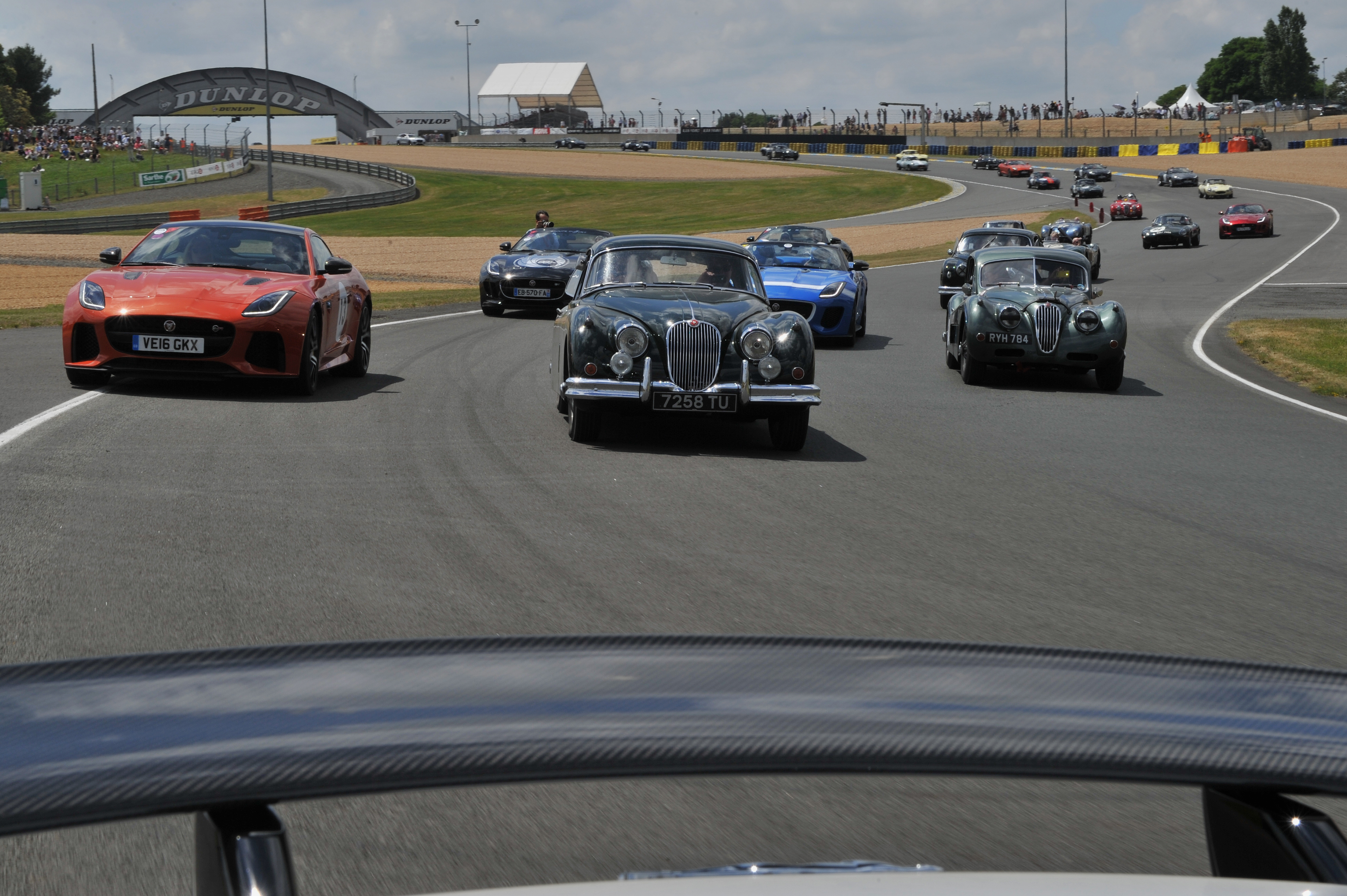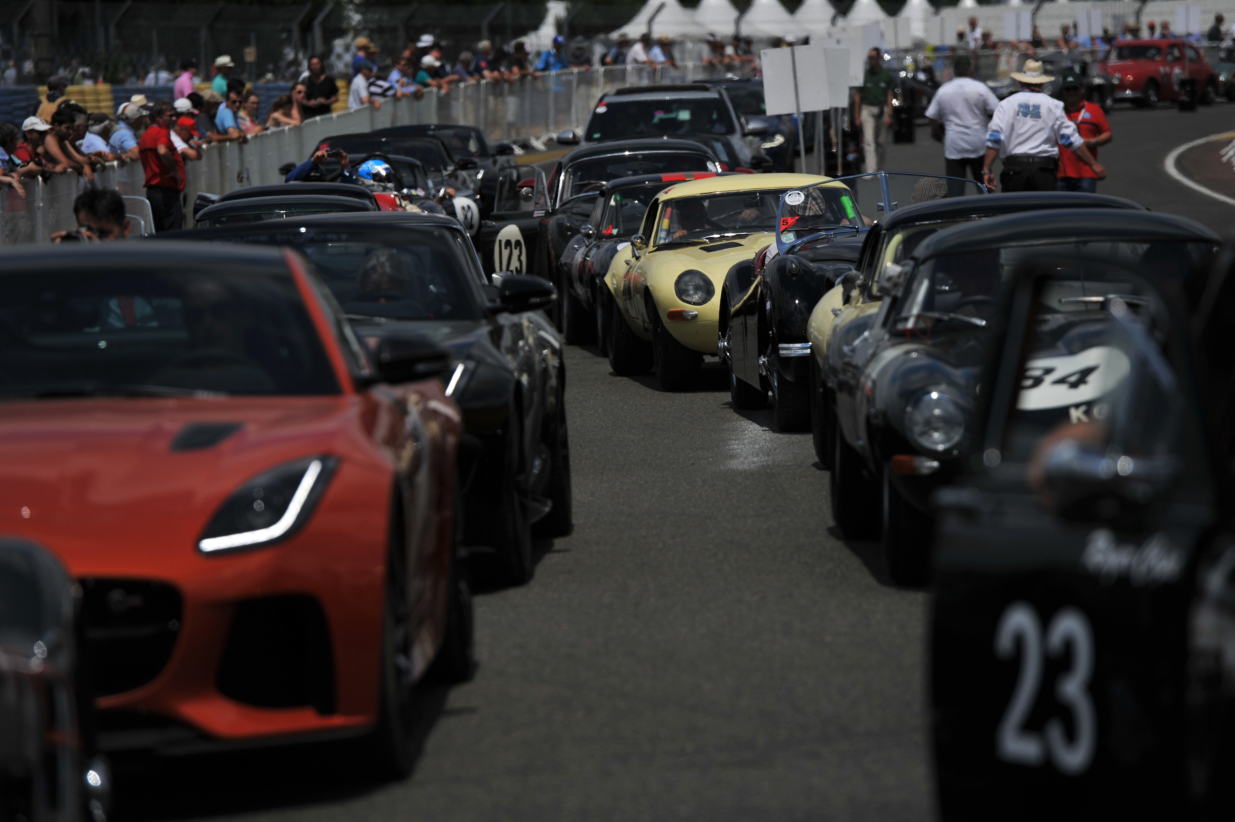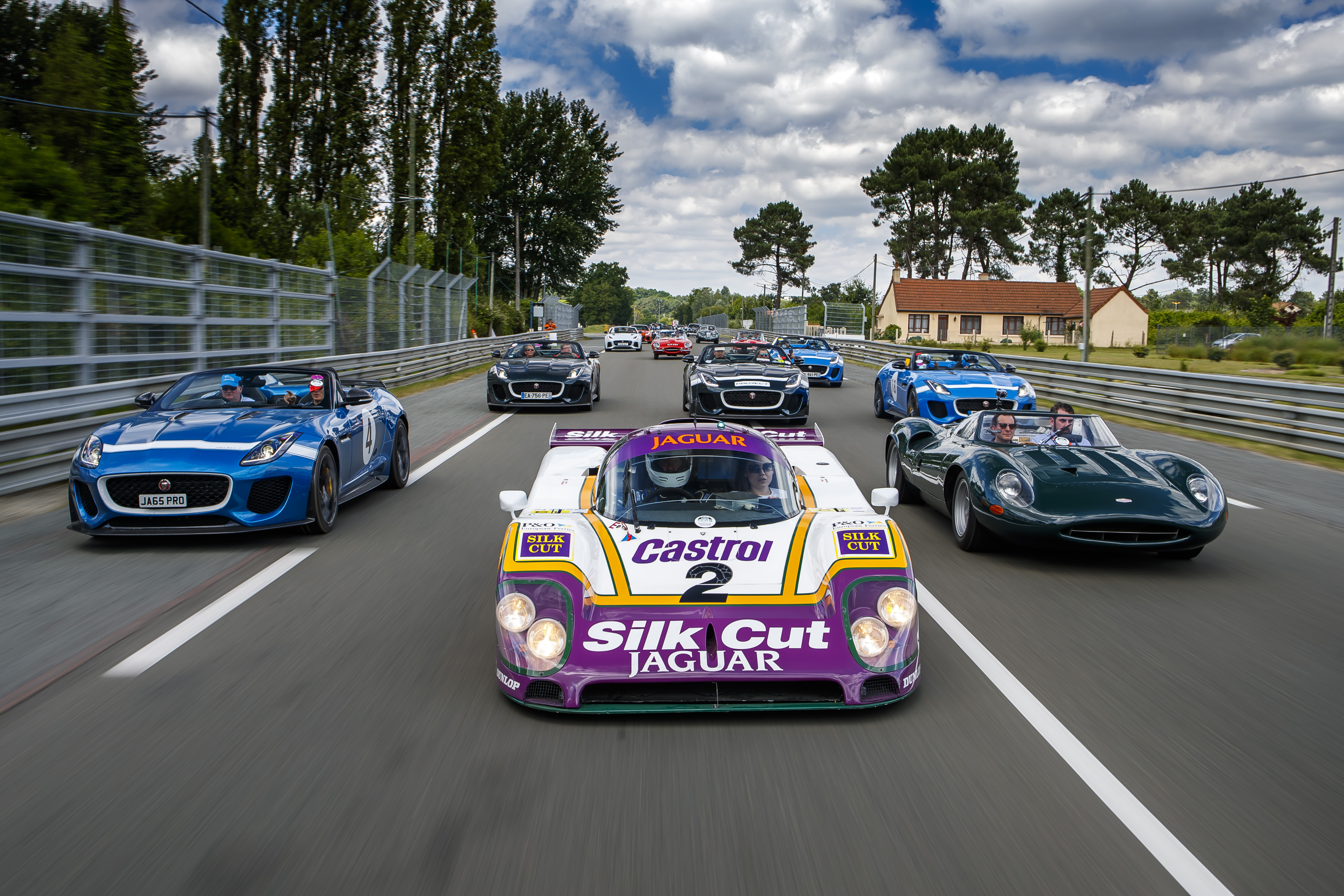 La Jaguar XJR‑9, vainqueur en 1988 pilotée notamment par Andy Wallace, était également à l’honneur, participant à l’exceptionnelle parade de 100 Jaguar, ainsi que la XJ13, prototype unique de 1966, entourées de tous les modèles retraçant l’histoire de la marque jusqu’à la toute dernière F‑TYPE SVR de 575ch, la Jaguar de production la plus rapide jamais construite, capable d’atteindre 322 km/h.
