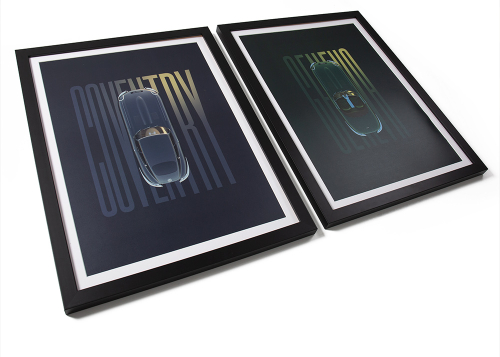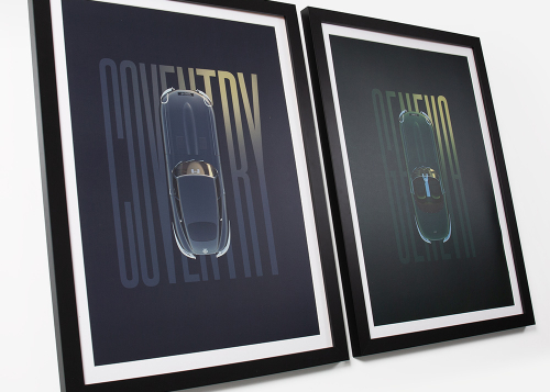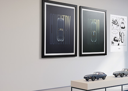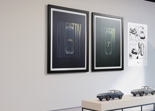 A pair of artworks, titled ‘From Coventry to Geneva’ celebrates the E-type's unforgettable public debut in fitting style. Strictly limited to 60 framed pairs, each comes with a certificate of authenticity