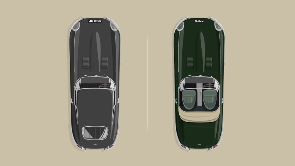 作为上世纪六十年代汽车工业最为杰出的作品之一,诞生于1961年的捷豹E‑Type从喷气式飞机中汲取灵感,由当时著名的空气动力学家Malcolm Sayer亲自主持空气动力学设计,配以具有卓越性能表现的3.8升发动机,最高时速可达150英里/每小时(约等于241公里/每小时)。